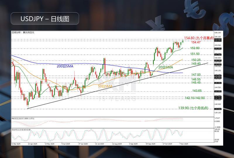 Im frühen Handel stieg der USDJPY heute auf rund 154,80, ein Neunmonatshoch, da der Markt erwartete, dass die japanischen Behörden kurzfristig nicht eingreifen würden, und die Spekulationen darüber, dass die Federal Reserve die Zinsen bei der nächsten geldpolitischen Sitzung senken könnte, weiter zunahmen.