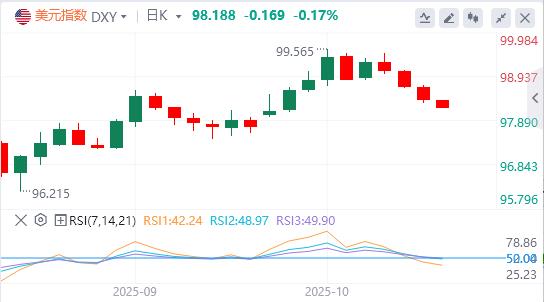 On October 17, in early Asian trading on Friday, Beijing time, the U.S. dollar index was hovering around 98.18. On Thursday, the U.S. dollar index continued its decline and finally closed down 0.31% at 98.361. U.S. bond yields generally fell, with the benchmark 10-year U.S. bond yield falling below 4% and finally closing at 3.973%. The 2-year U.S. bond yield, which is sensitive to the Federal Reserve's policy interest rate, closed at 3.431%. As the explosion in the U.S. credit market boosted risk aversion and expectations of an interest rate cut by the Federal Reserve increased, spot gold hit a record high for the fourth consecutive trading day, soaring $115 in a single day to more than $4,300 per ounce, and finally closed up 2.8% at $4,326.12 per ounce; spot silver stood above the $54 mark, and finally closed up 2.19% at $54.15 per ounce. The intensifying oil supply glut and concerns about the global economic outlook have caused international crude oil to hit a new low in more than five months. WTI crude oil in the US market followed the plunge of risk assets and finally closed down 2.39% at US$56.87/barrel; Brent crude oil finally closed down 2.23% at US$60.84/barrel.