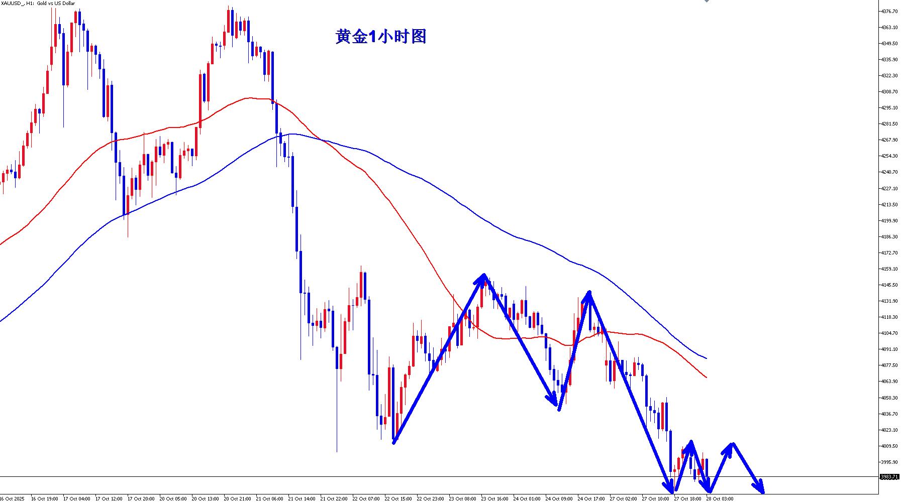 The 1-hour moving average of gold continues to cross downwards and the short position is arranged. Gold still has momentum in its decline. After gold fell below 4000, the short-term rebound near 4010 continued to fall under pressure. Gold bulls did not have much strength. Gold rebounded in early trading and was under pressure of 40. We can continue to go short near 10, but the fluctuations are now large. If gold bulls break through 4010, then the top can continue to focus on the resistance near 4050. The overall trend of gold will continue to be bearish and downward, and the rebound will give shorts an opportunity.