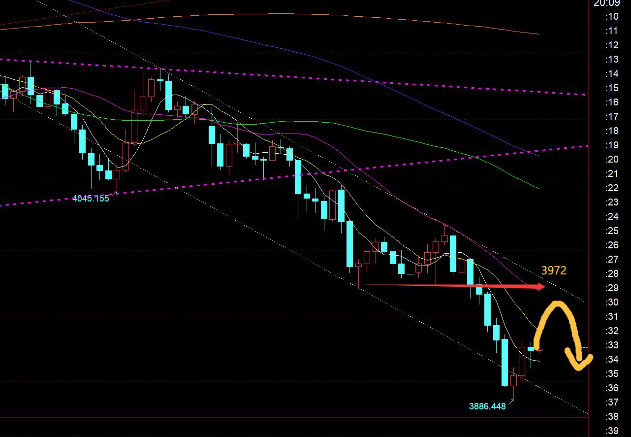 First, gold: yesterday afternoon it touched the bottom of last week and the convergence triangle lower track support 4055 was bullish, 4075 meters were closed, and the highest was 4085, but it still could not break through the hourly mid-track 4090, and the European market opened. After a wave of pressure, the bottom triangular lower track support is effectively lost, and there may be a second downward trend in the evening. Relying on the channel's counter-pressure point of 4060, we can continue to fall back, but unfortunately it only reaches 4050; in the evening, it reaches 3972, and a bottom pull occurs. The sign of stabilization is also the 382 split position of the backtest since the unilateral increase of 3311. Then 3980 steps back to see a rebound, 3993-92 is also bullish in advance, 4007 takes the closing meter, and 3980 happens to be It hit the low point in the middle of the night, and then rose sharply this morning, finally reaching the expected 4020;