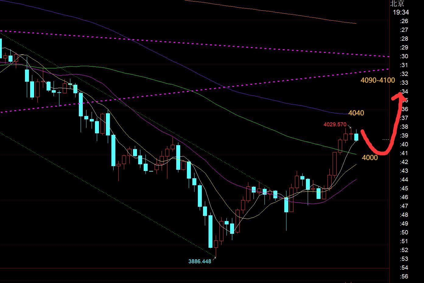 Second, the golden 4-hour level: at this time The mid-track 4025 is being tested. Once the closing line at 22 o'clock effectively breaks through the station, it will rise further. In conjunction with the bottom divergence of macd, the top is expected to test the 66-day resistance 4146;
