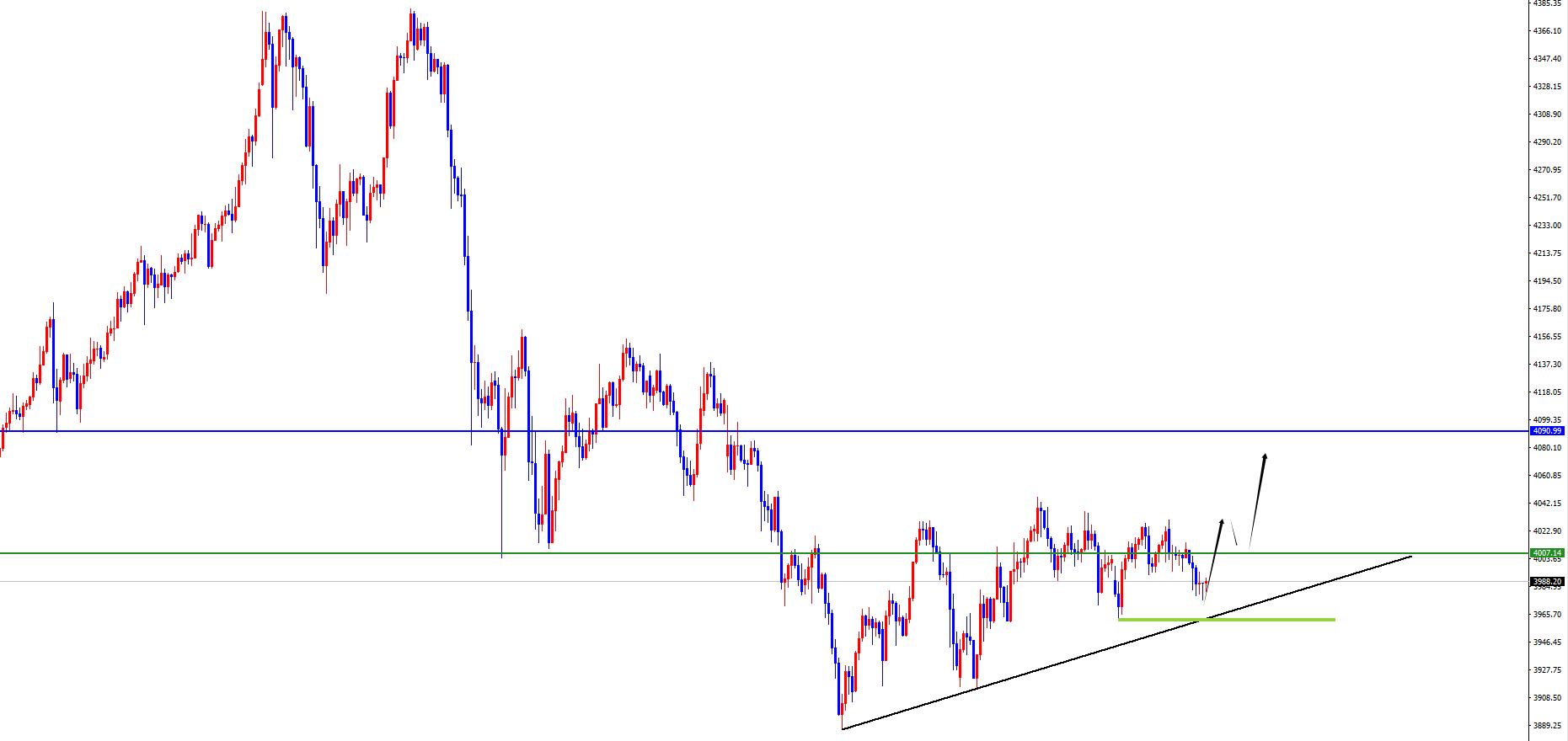 < p>Four hours (short term)The key watershed 4007, the price fluctuates in the range of 3960-4040, if it does not break yesterday's bottom, the shock will be bullish