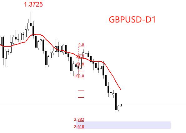 From a technical perspective, GBPUSD is in a mid-term bearish trend, and there are signs of accelerated decline since mid-October. The MA10 red moving average in the chart is a more reliable resistance line. As long as the future market is below the MA10 moving average, it can be determined that the short trend will continue. According to the prediction of the golden section expansion line, the next stage of support may appear at 2.3. Around 82~2.618 points, corresponding to 1.2880~1.2932 points.