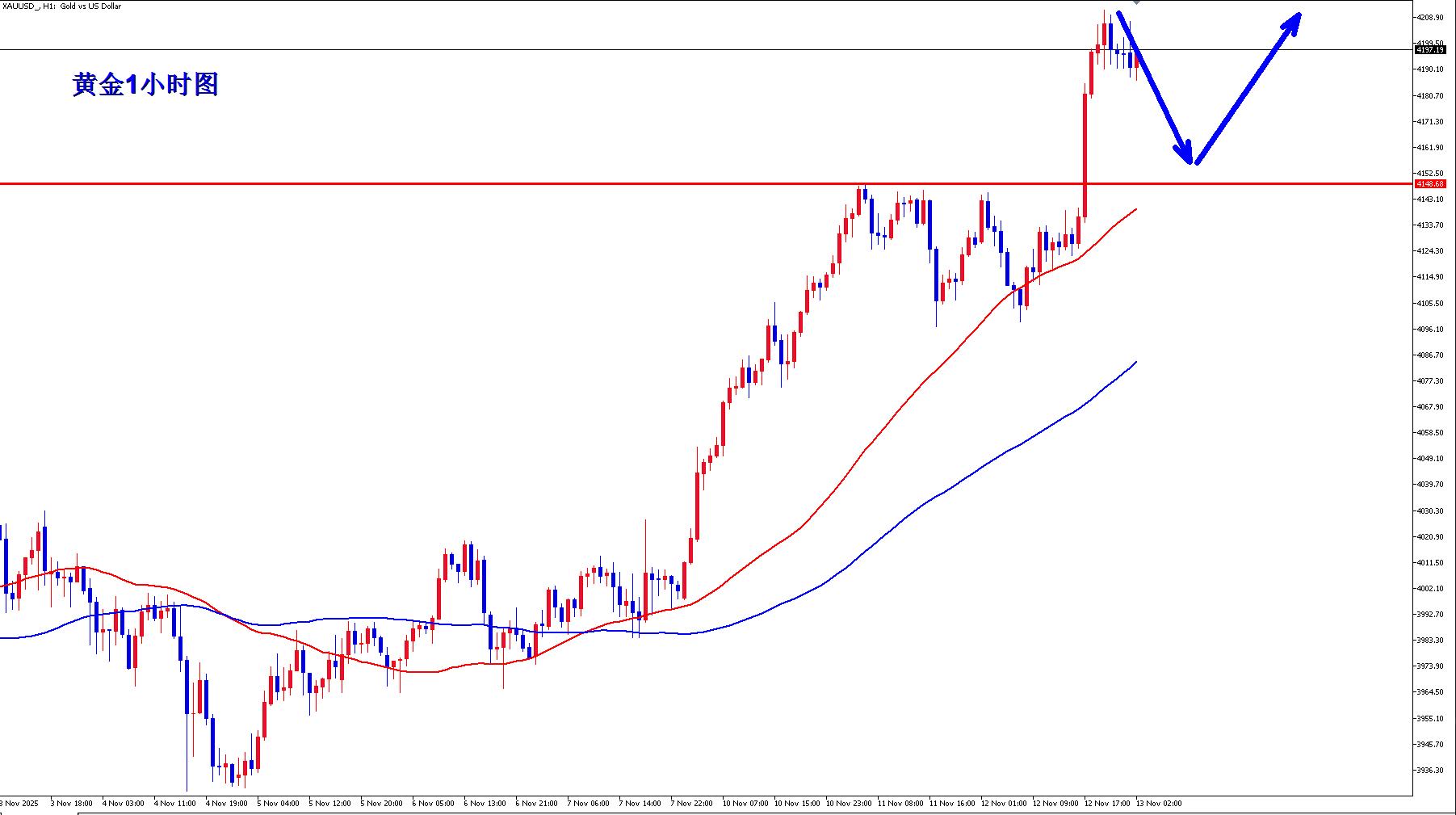 Gold’s 1-hour moving average continues the bullish arrangement of golden crosses upward. Gold bulls still have strength to rise. Yesterday we also said that gold’s short-term fluctuations are to gain momentum for an upward breakthrough. Gold recently broke through the resistance in the 4150-4160 area as expected and directly rose again to touch the 4211 line. Gold has now turned from resistance to support in the short term at 4160. Gold fell back to 4160 in early trading and directly continued to go long on dips.