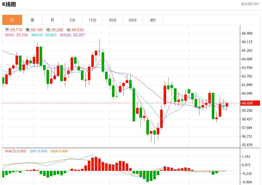 Crude oil market: As of 21:20 Beijing time, U.S. oil rose, now trading at 60.030, an increase of 0.28%. Prices (crude oil) rose on the last trading day before the New York market opened, supported by positive signals emerging on the relative strength indicator, after reaching oversold levels, approaching the EMA50 in an attempt to find its short-term trend.