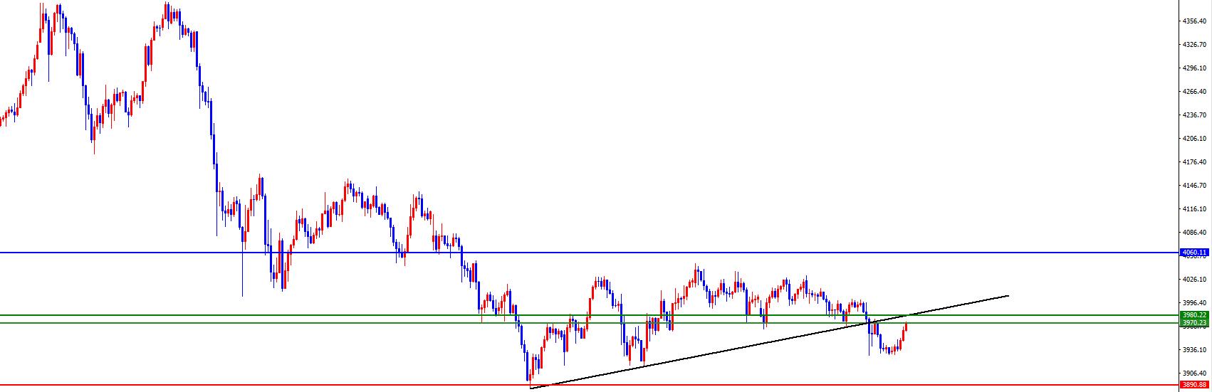 Le tournant clé est 3970-3980. Si le prix est tombé en dessous hier, il est actuellement sous pression à court terme.