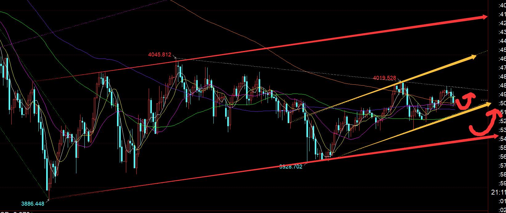 Deuxièmement, le niveau horaire doré : le matin, il s'appuyait sur 3975 pour remonter directement. Il se situait hier au niveau de support divisé par 50 et constituait également le principal niveau haussier déclenché pendant la nuit ; lorsque Dayang K est apparu, il est revenu à la position 3985 divisée par 382 pour continuer à provoquer un rebond haussier, et a finalement atteint le niveau cible au-dessus de 4000. ; Après que Dayang ait percé le rail intermédiaire dans l'après-midi, il a percé le rail intermédiaire à plusieurs reprises, donc je n'ai pas envisagé d'entrer sur le marché car la stabilité n'était pas forte à ce moment-là ; bien que le marché européen ait rebondi jusqu'à 4 014, l'intensité n'a pas été grande. À ce moment-là, il a grimpé plus haut et est retombé sur la voie ferrée médiane ; pour ce soir, puisque les données non agricoles ne seront pas publiées, les fluctuations pourraient ne pas être importantes ce soir. Il faut faire attention à l'ouverture de la bourse américaine à 22h30. Il en est encore affecté depuis deux jours ; le support actuel est 3990, qui est la division 618 qui supprime les gains intrajournaliers, suivi de la piste inférieure de la ligne du canal jaune 3983-84 dans l'image. Si vous détenez ces deux points, vous pouvez toujours maintenir le choc haussier. La résistance est 4012-14 et une percée est nécessaire. Il peut tester les gains et les pertes du point culminant d'hier ; si un fort impact est possible, il y a une faible probabilité de tester la piste supérieure du canal jaune 4040-42. Si cela peut se faire, cela pourrait ouvrir la voie au deuxième point culminant la semaine prochaine ; de plus, si le support de la piste inférieure du canal jaune ne peut pas être tenu, cela affaiblira ou testera la piste inférieure du canal rouge 3955 ;