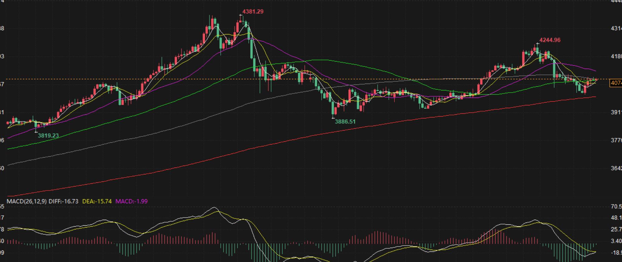 어제의 금 추세는 초기 검토의 미래 지향적 판단을 완전히 확인했습니다. 정확하게 고정된 4133-4050의 코어 쇼크 범위는 하루 종일 시장 운영의 "골격"이 되었습니다. 장중 궤적은 명확하게 보입니다. 백시장은 안정화되고 4055선에서 상승했습니다. 미국 시장은 4133 근방의 박스권 상단을 정확히 터치한 후 압력을 받아 하락세를 보이다 마침내 상승 원점으로 돌아왔습니다. 일일선은 긴 위쪽 그림자 선으로 작은 양선을 마감하여 위쪽 압력의 효과를 직관적으로 드러냅니다.