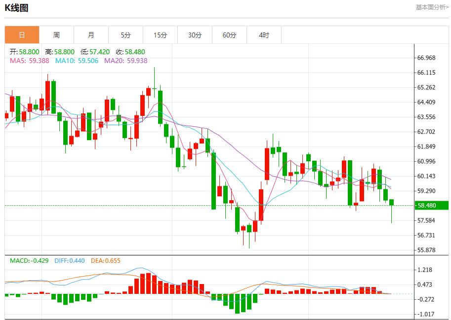 원유 시장: 베이징 시간 21시 20분 현재 미국 유가가 하락했습니다.58.430으로 0.95% 감소했습니다. 뉴욕 세션 전, (원유) 가격은 지난 일중 거래에서 하락하여 과매도 수준에 도달했음에도 불구하고 주요 지지 수준인 $58.00 아래로 떨어졌습니다. 단기적으로 주요 약세 추세가 우세하고 50일 이동 평균 아래에서 거래되는 가격의 지속적인 하락 압력과 상대 강세 지표의 부정적인 신호가 결합되었기 때문입니다.