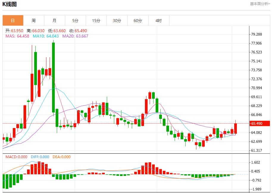 原油市场:截止北京时间20:23,美油上涨,现报65.660,涨幅2.58%。纽市盘前,(原油)价格在最后一个交易日上涨,利用其在EMA50上方的稳定性,这提供了动态支持,保持了短期看涨趋势的延续,伴随着一条看涨修正斜线的交易,表明了到目前为止主导看涨势头的强度。