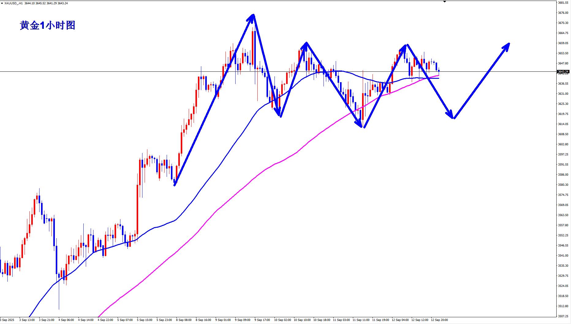 - 【XM外汇决策分析】:黄金冲高回落,日线走循环,又要试探短期5日再企稳2025-10-14