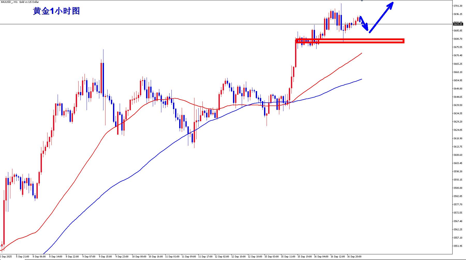 黄金1小时均线还是继续金叉向上的多头排列,黄金多头力度仍在,整体还是继续震荡上行的节奏,黄金多头可能随时继续向上发力,黄金成交密集区域支撑在3675-3680之间,黄金昨晚快速下探也仅仅止步于3678就直接开始强势反弹,黄金早盘回落3678上继续逢低做多。