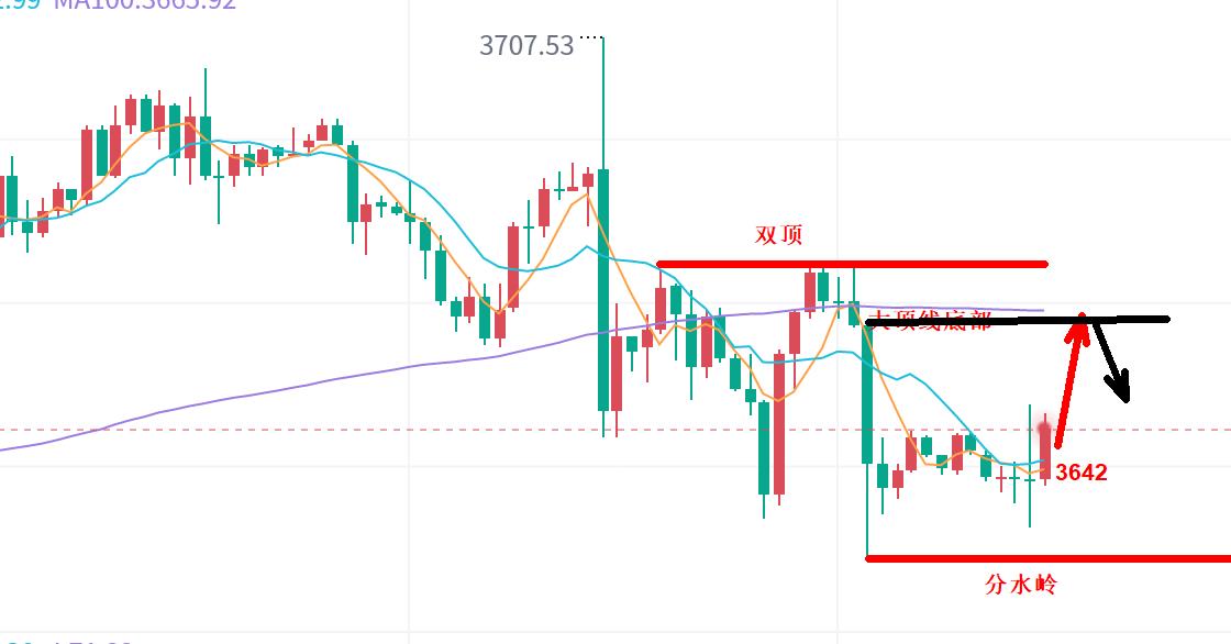 3,上方618位置在3656,感觉会破。(重点关注小时线大阴线顶部3664-65)