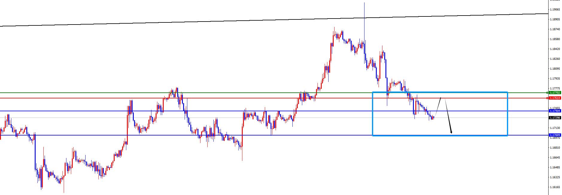 欧美1.1760-70区间空,防守40点,目标1.1740-1.1700