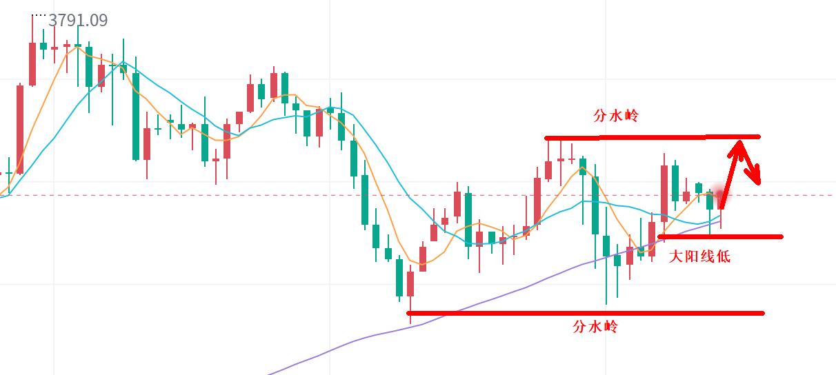 3,618位置在3736,早间微差,而上升就不能一直要低点,低点给了反而不涨了,这3740就是坎,昨日上升回撤50%位置。