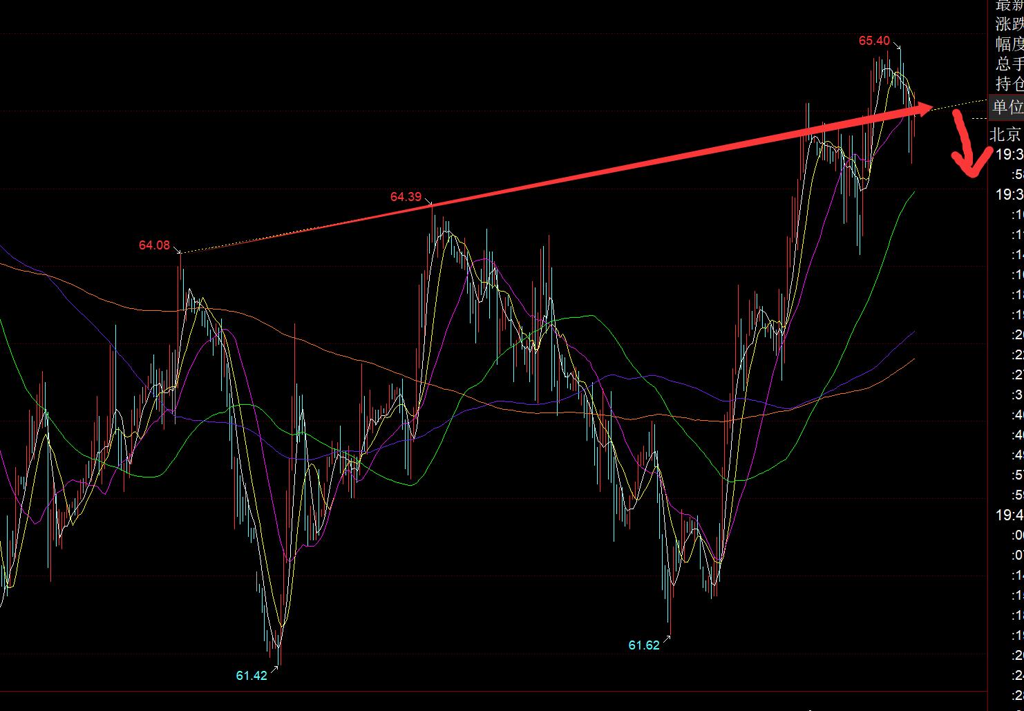 原油方面:日线近期大的震荡区间范围是66-61,未走出之前,还存在反复震荡走法;从上图短周期看,昨日提及的趋势阻力线是压制了一波,但空间不大,只给到64.1一线;当前又有所冲高回落于此线之下,留意65得失,站不上,就要小心冲高回落,小时线macd也存在顶背离,拉高是容易回踩的;