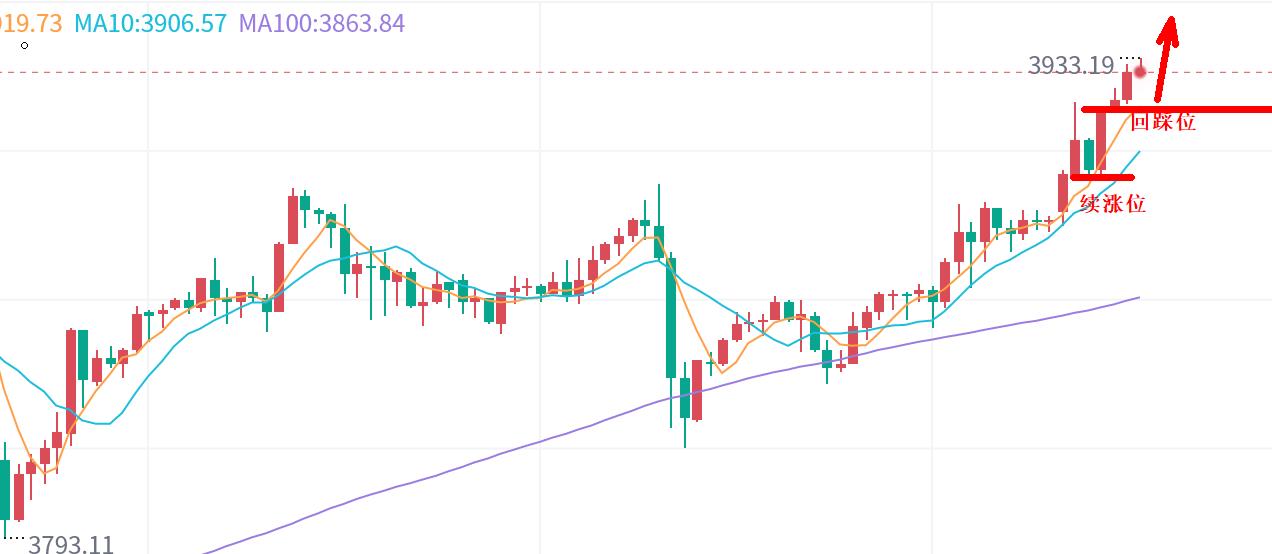 极强口诀就是早间6-8点直接多,看延续上升,而7点价格就破高到3920一线。