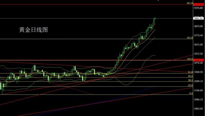 黄金市场昨日延续拉升趋势,早盘小幅高开在3888.8的位置后行情先回落给出3883.8的位置后行情强势震荡拉升,破位3900整数关口后行情强势拉升,日线最高触及到了3970.1的位置后行情尾盘整理,日线最终收线在了3961.1的位置后行情以一根上影线稍长于下影线的大阳线收线,而这样的形态收尾后,今日的行情有冲击4000整数关口的预期,点位上,下方3325和3322的多和上周3368-3370的多和3377和3385多和3563的多减仓后止损跟进在3650持有,今日早盘回落的话3946多保守3943多止损3939,目标看3965和3971.破位看3976和3982和3993和4000压力关口争夺。