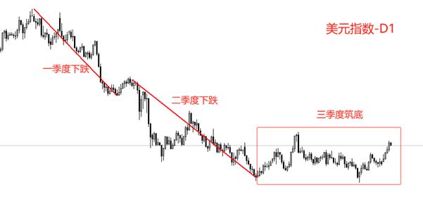 今年一季度和二季度,美元指数分别从110和104下跌至最低103和96点,跌势迅猛,跌幅较大。为什么三季度美元指数却能够稳定在96关口上方,不再创新低?