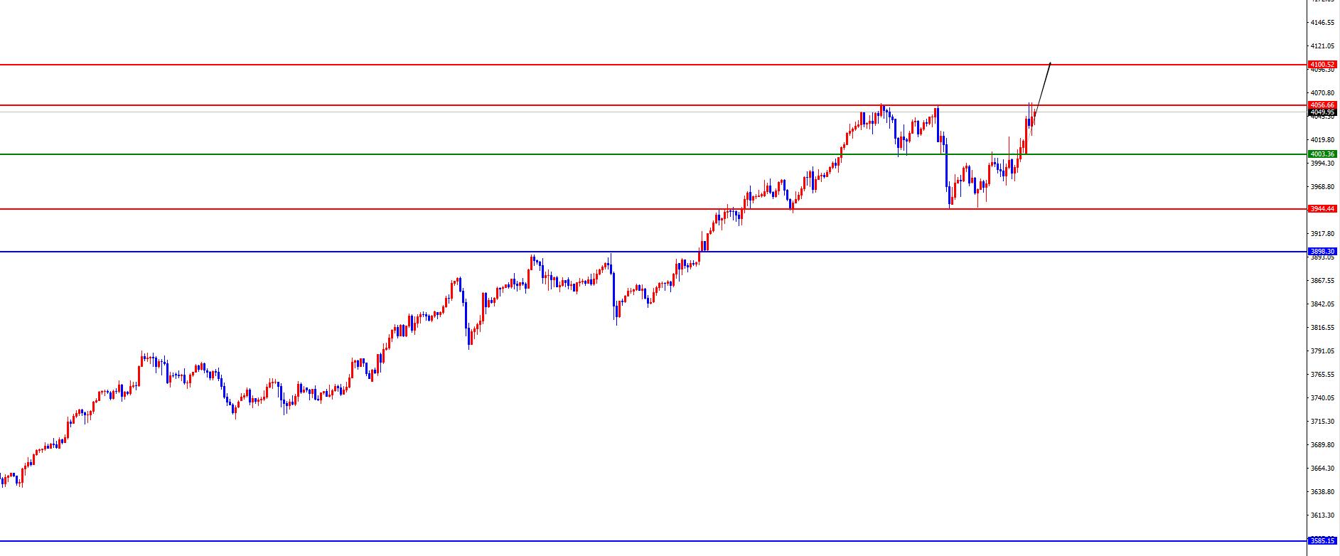 从多周期分析,首先观察月线节奏,从长线上看3130位置是长线走势的分水岭,价格在此位置之上长线多对待即可。从周线级别看,目前周线多空分水岭于3585位置,价格在此位置之上中线多对待即可。从日线级别看,暂时需要关注3898区域支撑,此位置之上波段多对待。从四小时上看,在上周五日内如期按照我们分析的区间运行,同时在收盘突破四小时阻力,所以今日早盘再度飙升,短线看今日早盘低点位置就是短期分水岭,价格在此位置之上持续看延续,只有跌破后才会修正。一小时上看目前黄金多头还在延续中,所以暂时依托早盘低点继续看延续即可,上方关注4070-4100区域。