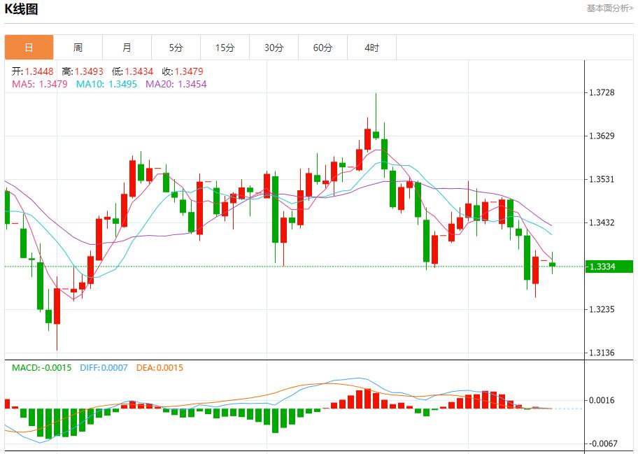英镑/美元:截止北京时间20:23,英镑/美元下跌,现报1.3332,跌幅0.20%。纽市盘前,(GBPUSD)价格在上一交易日内上涨,回补了一部分之前的跌幅,但由于其交易价格仍低于EMA50,受到负面压力影响,这加强了短期内主要看跌趋势的持续性,尤其是在与该路径的支撑趋势线并行交易时。