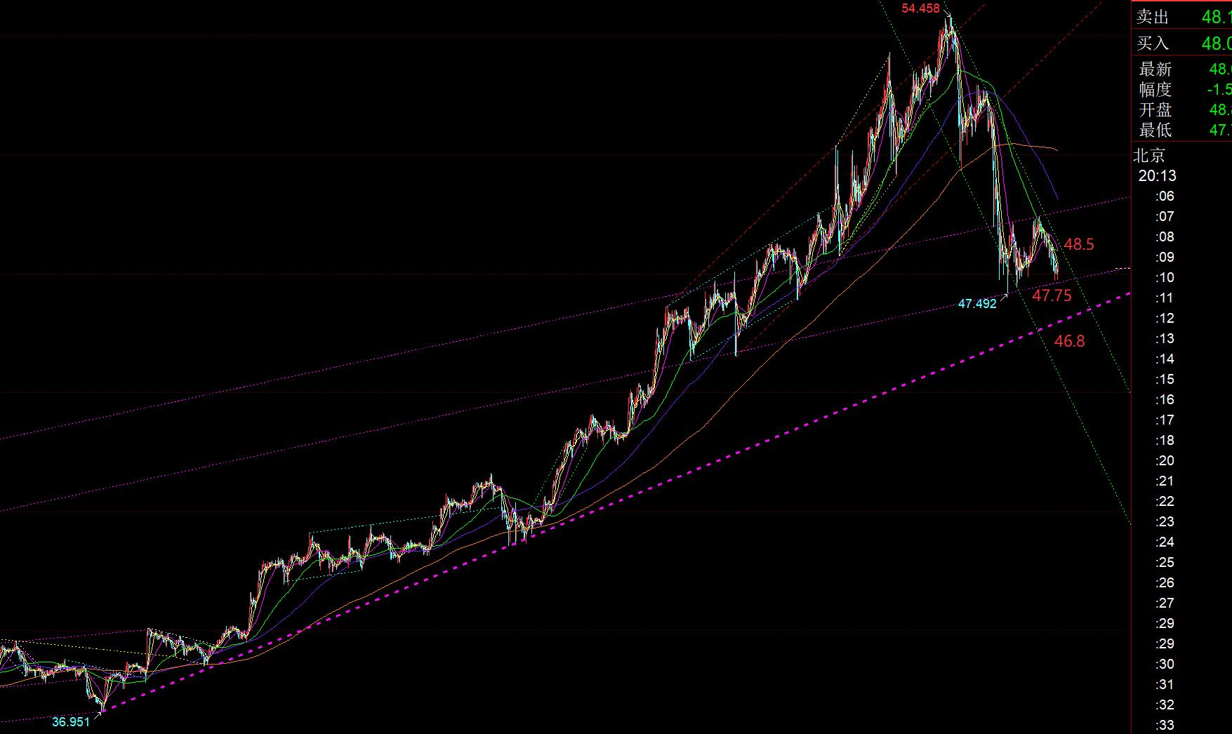 Em termos de prata: o ponto de suporte derivativo correspondente à sua linha de tendência de vida roxa move-se para cima para a linha 46,8-46,9; além disso, o suporte inferior da faixa inferior nos últimos dias é a linha 47,75. Preste atenção aos sinais de estabilização destes dois suportes. ; Resistência 48,5-48,8, o mercado europeu também está fraco. Se a resistência se recuperar primeiro, você poderá tentar ver uma segunda supressão para baixo. Se o suporte permanecer estável após o segundo declínio, considere a estabilização e a recuperação nas quedas; se a resistência for efetivamente quebrada, veja 49,5 acima;