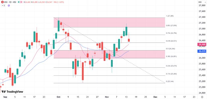 XM: as ações de Hong Kong recuaram após quatro dias consecutivos de ganhos, e a marca de 26.000 pode mais uma vez desempenhar um papel importante cn.xmfx.meo um suporte importante