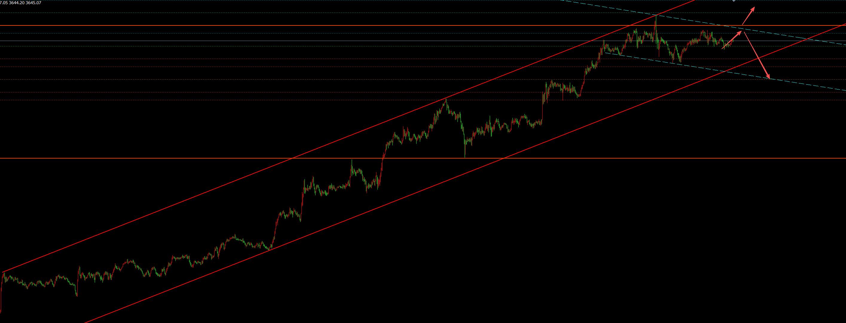 早盤拉升,午後維持回落3637-35多,破底損,直接拉升給55這裡配合五分鐘弱空信號右側短空一次,其次就是四小時上線附近空一次,損基本五塊就夠了,