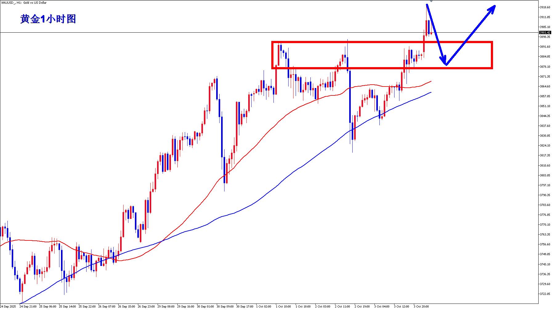 黃金早盤開盤之後繼續強勢突破突破創新高,黃金多頭繼續在新的上漲征程中馳騁,黃金1小時均線再次向上拐頭上翹,黃金多頭的力度再次回歸,黃金還有繼續上漲的動能,黃金在第三次向上之後突破,黃金前期3880-3890區域現在已經形成支撐,早盤回落早盤起漲點3885附近繼續逢低做多。
