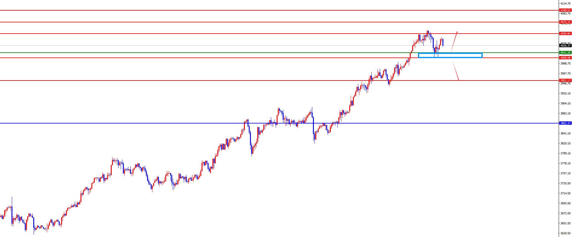 從多周期分析,首先觀察月線節奏,從長線上看3130位置是長線走勢的分水嶺,價格在此位置之上長線多對待即可。從周線級別看,目前週線多空分水嶺於3531位置,價格在此位置之上中線多對待即可。從日線級別看,暫時需要關注3862區域支撐,此位置之上波段多對待。從四小時上看,在今日早盤期間向下回撤剛好測試四小時支撐後止步上漲,所以此位置是短期走勢的關鍵,隨著時間的推移暫時關注4010-4011區間支撐,同時早盤低點為日內分水嶺。一小時上看目前價格向下修正還沒有結束,所以暫時關注歐盤市場節奏,美盤再佈局,位置上重點關注早盤低點得失。