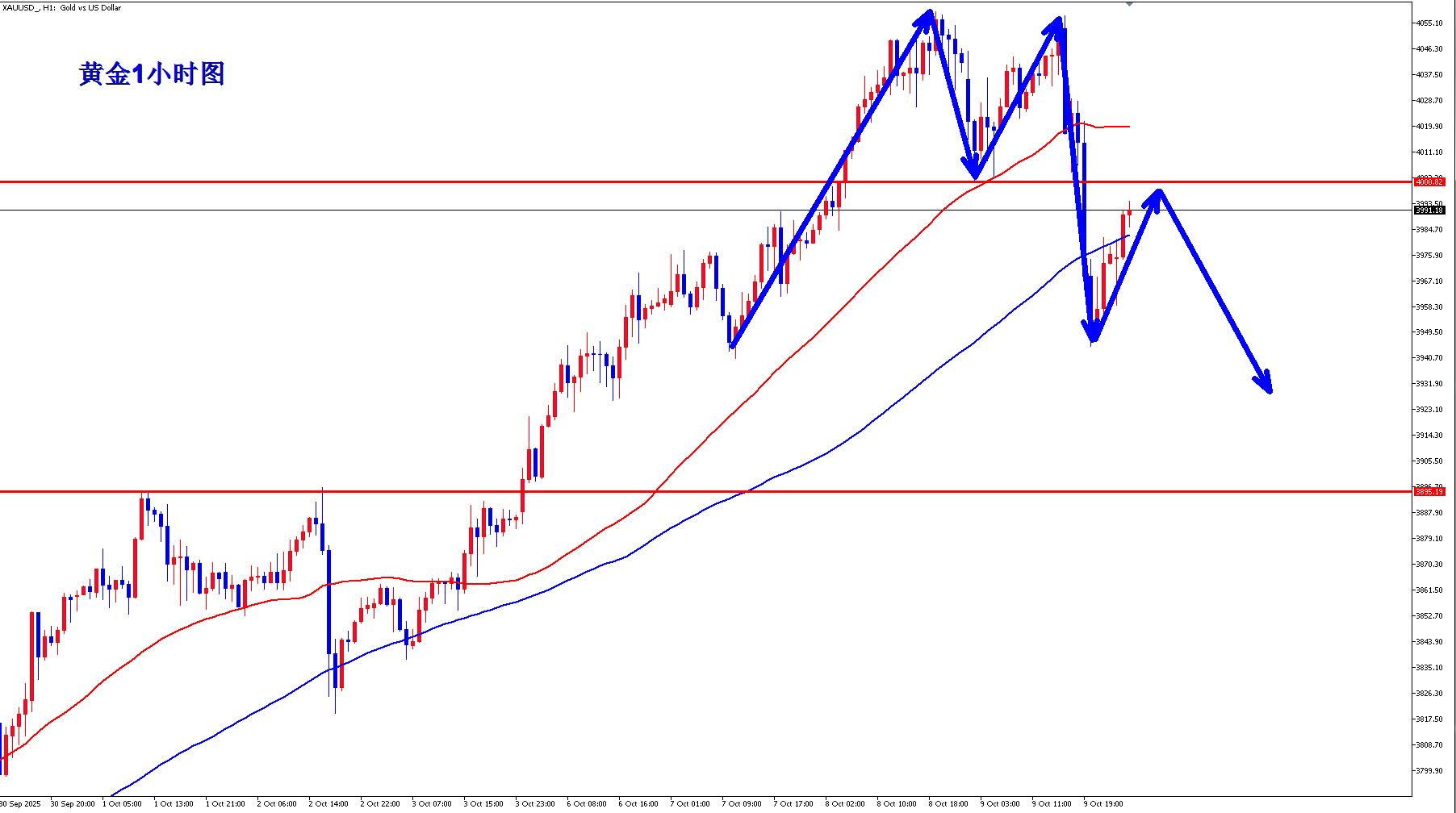 黃金1小時均線已經開始向下拐頭,黃金1小時上漲力度已經不足,黃金1小時形態已經形成雙重頂部結構,黃金短線承壓4000下逢高就是空的機會,不過現在黃金的節奏也很重要,那麼就是今天如果一直沒有大幅回落,而是繼續在歐盤還維持強勢,慢陽上漲的節奏,那麼黃金可能就又要用時間換空間的調整,那麼黃金可能還是可能繼續上行,然後在消息的刺激下強勢拉升,完成洗盤,所以今天的強弱很關鍵。