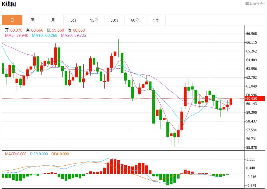 原油市場:截止北京時間21:20,美油上漲,現報60.650,漲幅0.88%。紐市盤前,(原油)的價格在上一次盤中交易中上漲,受到相對強弱指標出現積極信號的支撐,試圖一次性超越所有負面壓力,正嘗試突破其EMA50阻力位,並在短期內攻擊主要的看跌趨勢線,同時利用其在59.85美元以上的穩定性。